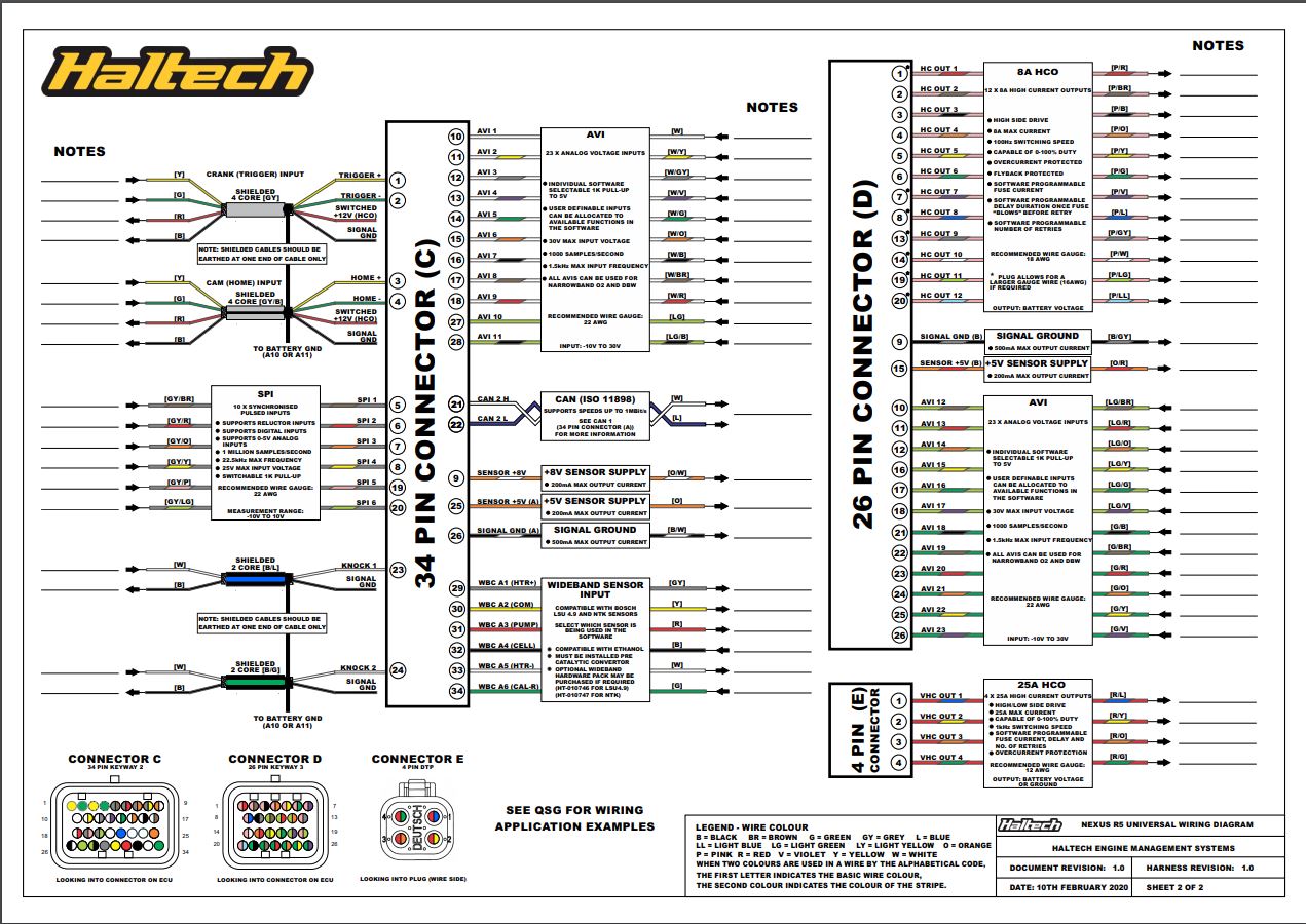 - The wiring diagram is accompanied by the full VCU manual and Software located on the USB key provided with the VCU, or downloadable from the Haltech Website.